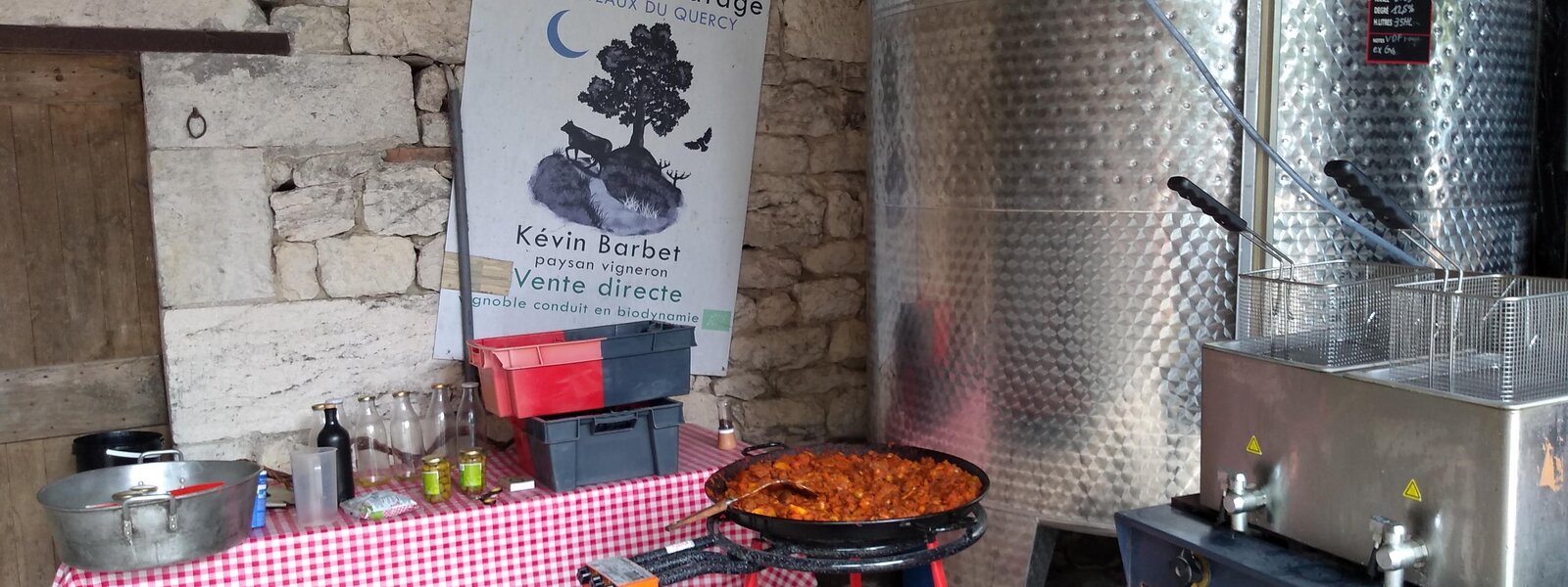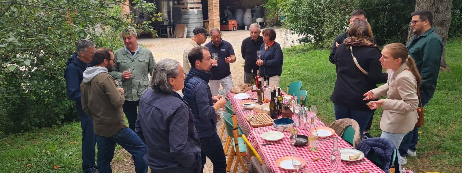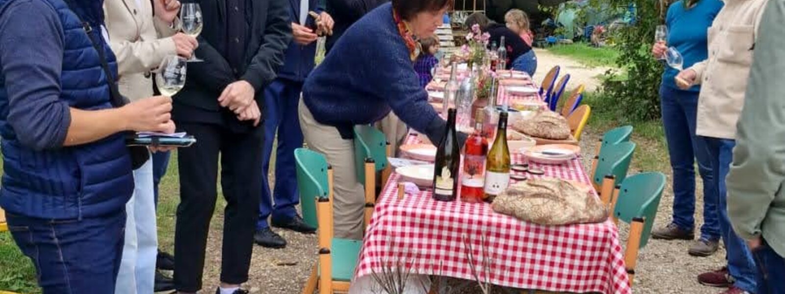 Nous avons été accueillis chaleureusement par Kevin Barbet et toute sa famille, qui nous ont ouvert les portes de leur ferme. Autour d’un repas généreux, accompagné des vins du domaine soigneusement commentés, et de quelques autres flaçons, chacun a pu profiter d’un moment d’échanges et de détente.